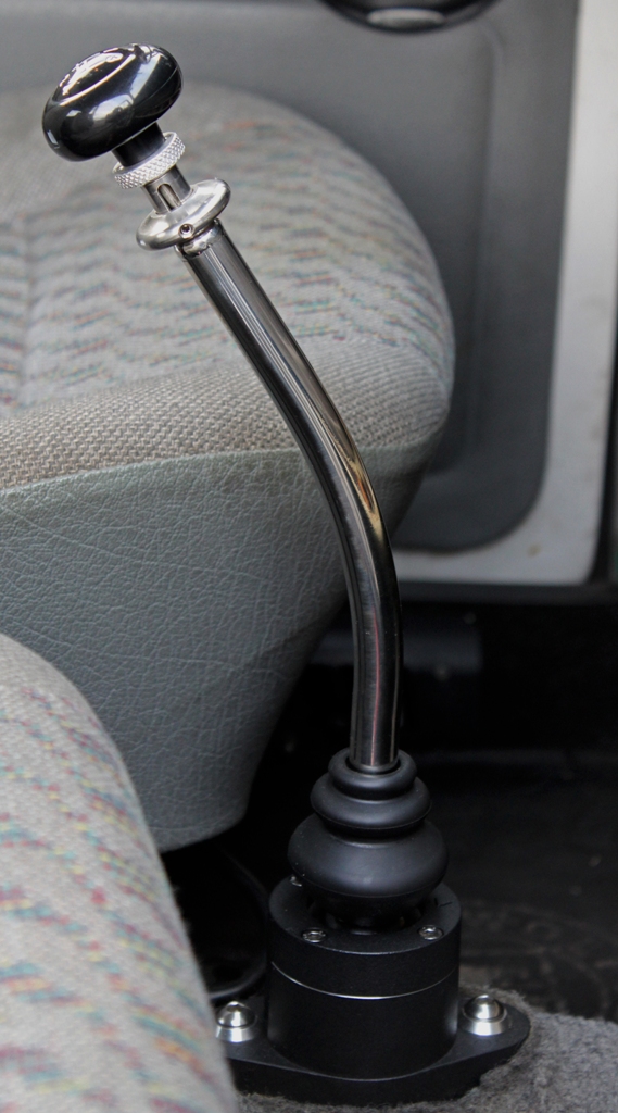 Como ya dije, existen varias versiones para Escarabajo/Karmann-Ghia/Typ 3… e igualmente para Transporter T1/T2, en los cuales se puede configurar con varias longitudes, formas (recta, con ángulo o en ese) , combinación de acabados, tipo de pomos… además de otras opciones técnicas. En mi caso escogí la versión más larga para Escarabajo, de 14″ de longitud (355 mm) y en ángulo. El pomo en negro es similar al original de Volkswagen de los 50’s y 60’s y al igual que éste presenta el esquema de marchas. Una de las opciones de mejora que solicité es el «Porsche Bushing»:un casquillo de nylon para la rótula que amortigua vibraciones y ruidos, inspirado en el sistema empleado por algunos Porsche.